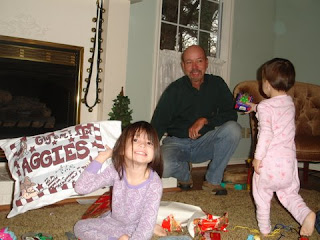 We celebrated with Gran and Grandpa on Christmas Eve. They came up on Wednesday and watched the girls while Scott and i went to dinner with the Garred's. Scott and Gary did a few projects on Thursday and you will be glad to know that if you come and visit us in the summer there will be air conditioning available in the guest room. Thank you Gary! Gran played and entertained the girls while I finished up some last minute Christmas stuff.